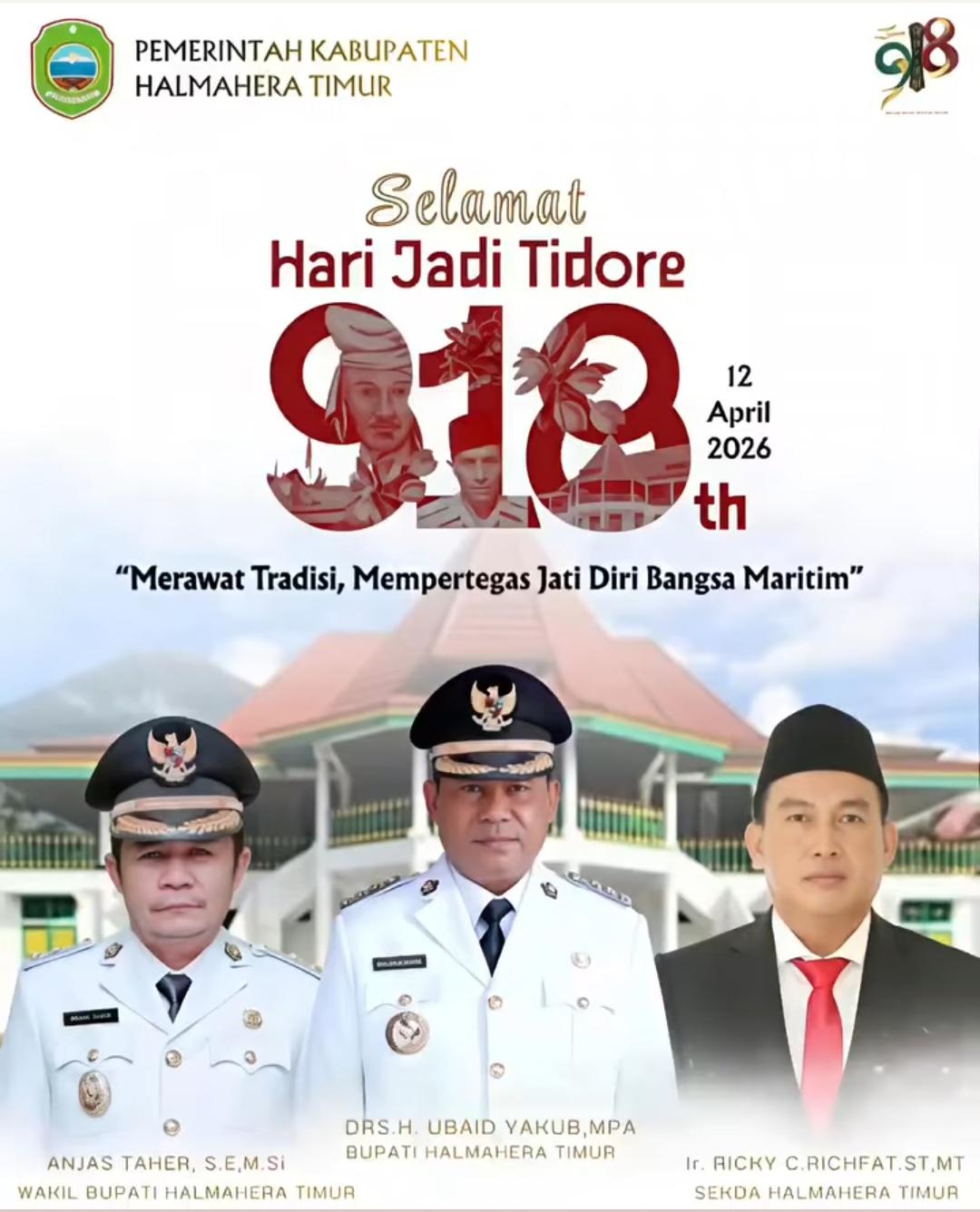 MalutStory- Bupati Halmahera Timur, Ubaid Yakub, menghadiri Upacara Peringatan Hari Jadi Tidore (HJT) ke-918 yang berlangsung khidmat di pelataran Kedaton Kesultanan Tidore, Minggu (12/04/2026). Dalam upacara tersebut, Bupati didampingi oleh Sekretaris Daerah Halmahera Timur, Ricky Chairul Richfat, Asisten I, serta jajaran Pimpinan Organisasi Perangkat Daerah (OPD). dengan pendampingan langsung dari pemangku adat, yakni Sangaji Maba […]
